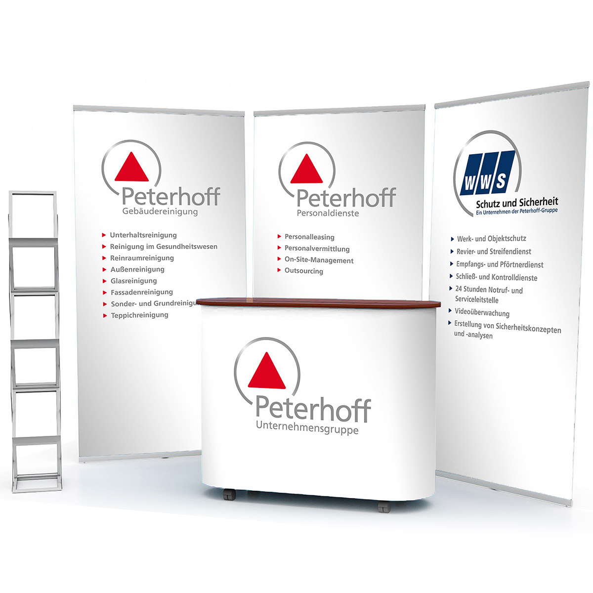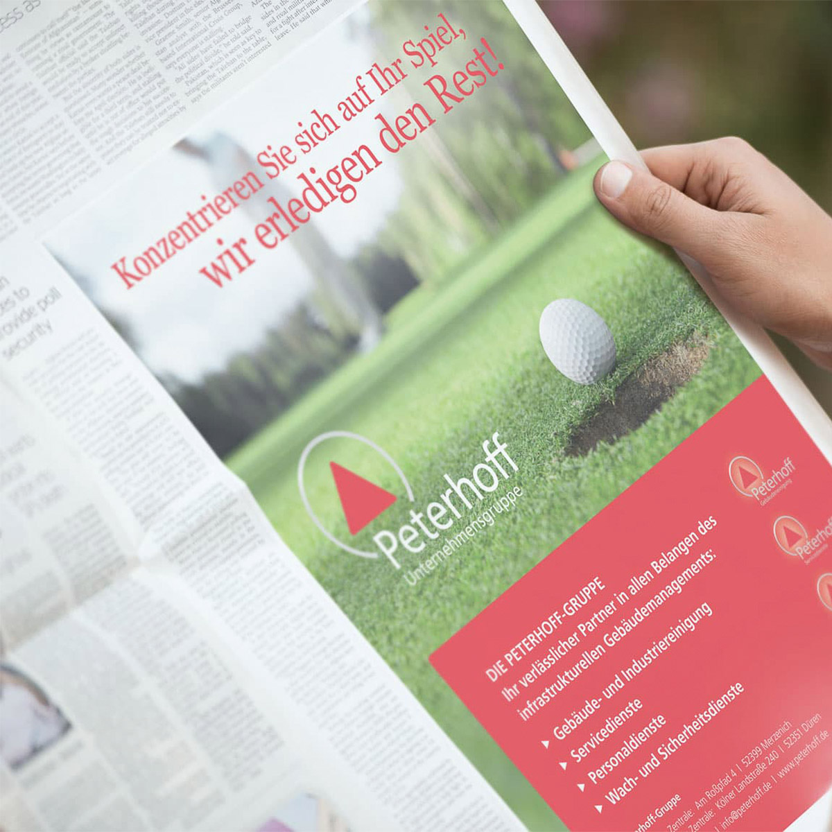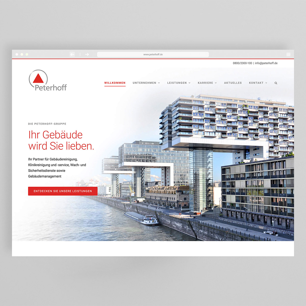 Die Peterhoff-Gruppe, eines der führenden Dienstleistungsunternehmen in den Bereichen Gebäudereinigung, Sicherheit und Facility Management, zählt bereits seit 2014 zu meinen geschätzten Kunden. Seit über einem Jahrzehnt darf ich die kontinuierliche Entwicklung dieses Familienunternehmens begleiten und visuell mitgestalten – von der Website bis hin zur Außenwerbung am Firmensitz.